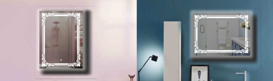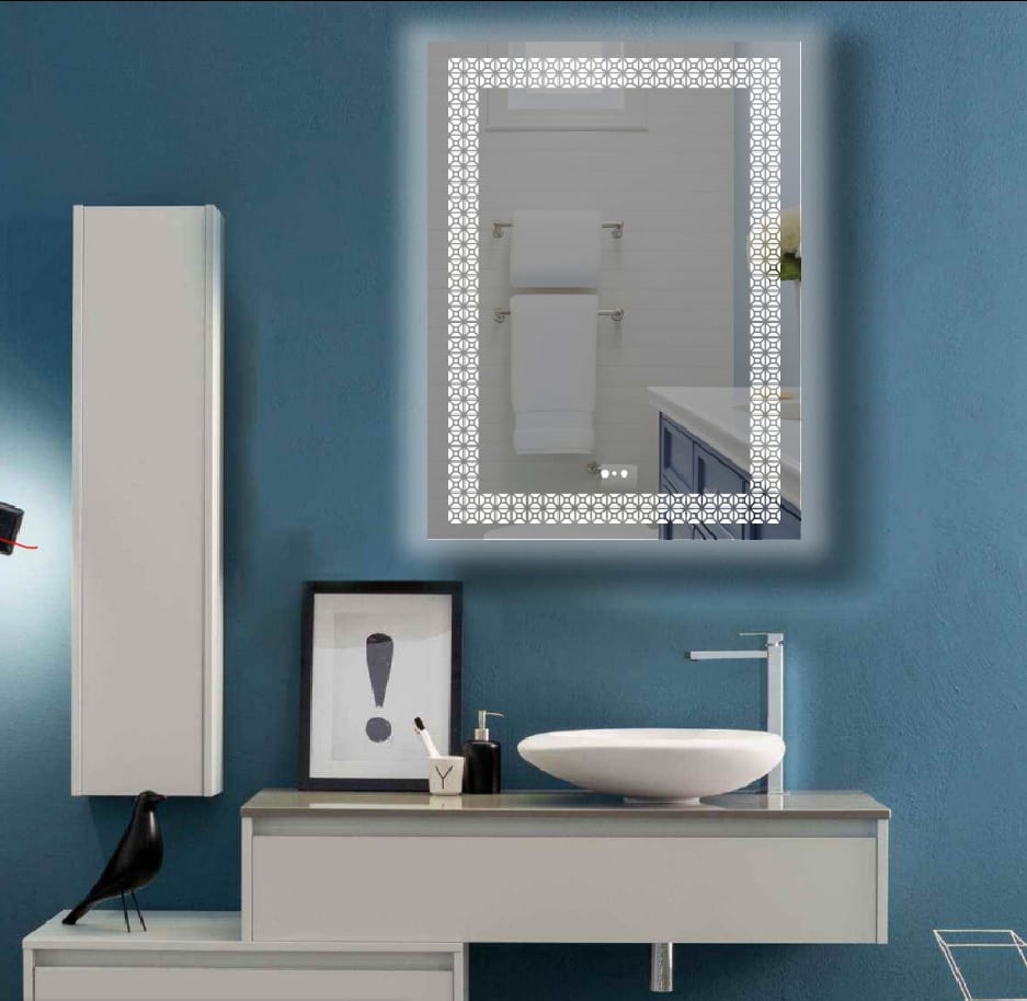 Luxart Ceramic LED Mirror - Classic Tringles Patten Shaped LED Rounded Shape Bathroom Wall Mirror