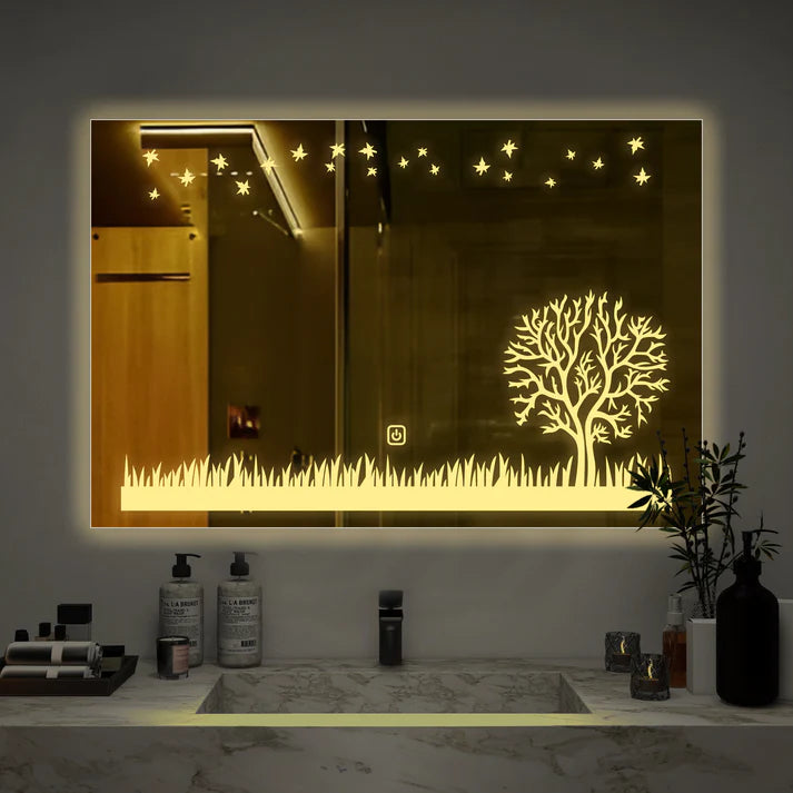 Luxart Ceramic - Rectangular Beautiful Theme Based Tree LED Bathroom Wall Mirror