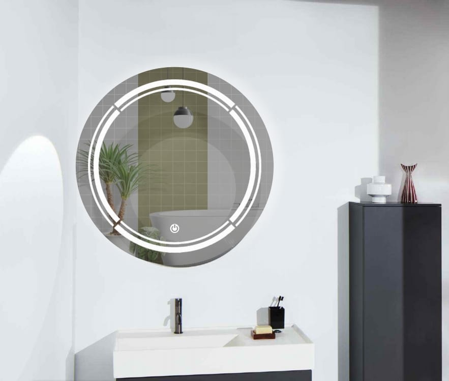 Luxart Ceramic-24X24 Glass Round Led Wall Mirror for Bathroom,Wash Basin
